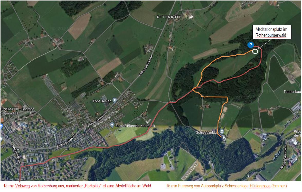 Anreise: Der Veloweg von Rothenburg (Bertiswilstrasse) aus ist mit einer roten Linie auf